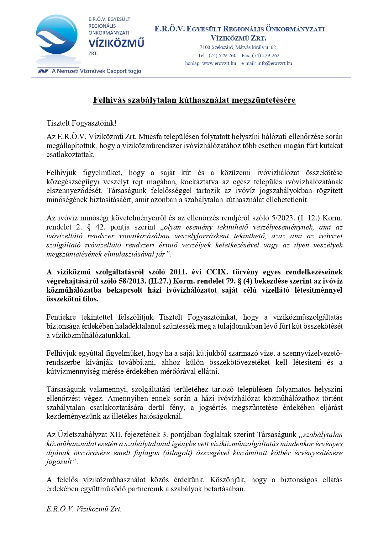 Felhívás szabálytalan kúthasználat megszüntetésére